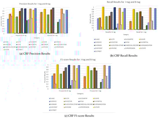 For most of the 23 evaluated categories, the CRF model outperforms the Bi-LSTM-CRF model, which has shown promising performance across most of the 23 evaluated categories. However, its effectiveness is influenced by the need for a larger dataset to leverage its complex architecture and hyperparameter tuning fully. While the CRF model has a simpler architecture and is generally less prone to overfitting, the Bi-LSTM-CRF model requires a larger volume of data to maximize its potential. Although the Bi-LSTM-CRF has been carefully optimized and tuned, expanding the dataset would allow for even more effective performance improvements and better utilization of the model’s capabilities.
