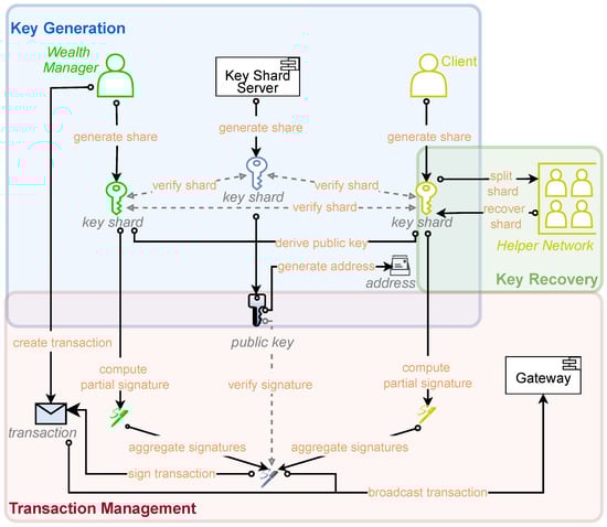 - Key Share Management: Securely stores their private key share locally, manages it and can initiate recovery in case of loss, as described in Section 4.3.
