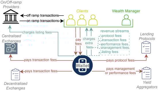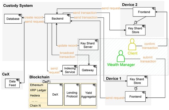 Our system comprises five main entities, as depicted in Figure 2; the Client User, the Wealth Manager User, the Custody Platform, the Blockchain System and the Centralised Exchange (CeX). Each entity is crucial in ensuring the system’s security, functionality and usability.