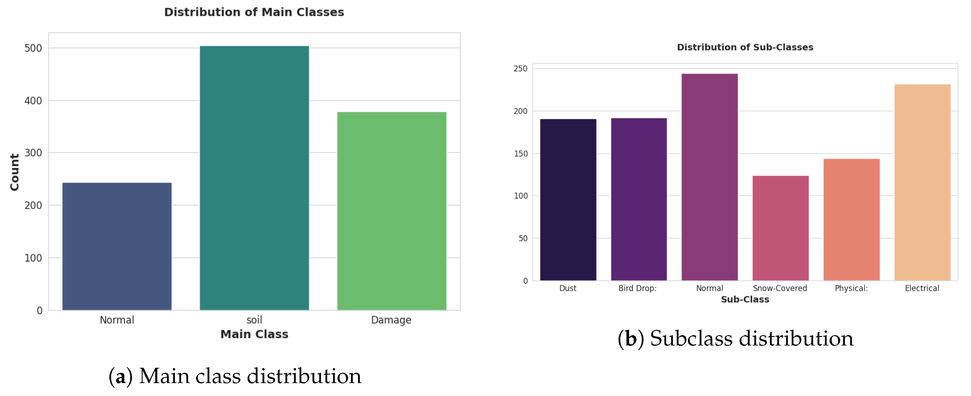 Figure 2 illustrates examples of the types of soiling and damage that commonly affect solar panels. Addressing these issues through regular inspection and maintenance is crucial to ensure long-term reliability and safety.