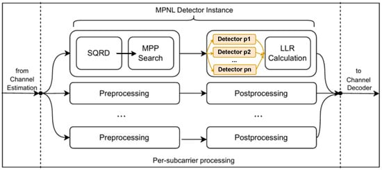 - Chen, Y.-M.; Dai, Y.-X.; Jhang, S.-J.; Ueng, Y.-L. An efficient soft-output fixed-complexity sphere decoder for large qam constellations. IEEE Trans. Veh. Technol. 2025, 1–15. [Google Scholar] [CrossRef]