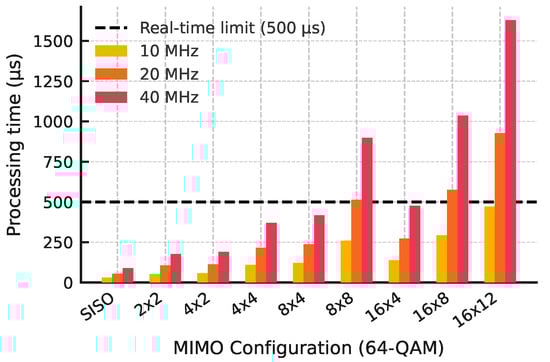 - Ding, J.; Doost-Mohammady, R.; Kalia, A.; Zhong, L. Agora: Real-time massive MIMO baseband processing in software. In Proceedings of the 16th International Conference on Emerging Networking EXperiments and Technologies, Barcelona, Spain, 1–4 December 2020; pp. 232–244. [Google Scholar] [CrossRef]