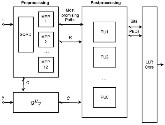 - Studer, C.; Burg, A.; Bolcskei, H. Soft-output sphere decoding: Algorithms and VLSI implementation. IEEE J. Sel. Areas Commun. 2008, 26, 290–300. [Google Scholar] [CrossRef]