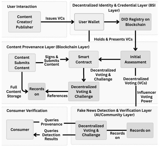 3. Proposed Framework: VeriTrust: A Blockchain-SSI Framework for Content Provenance and Fake News Detection