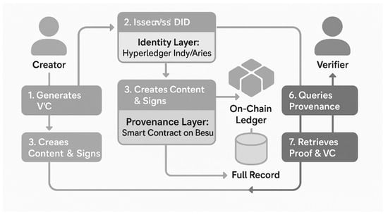 - Content Provenance Layer (Blockchain Layer): This layer acts as the system’s core and maintains an immutable record of content from its origin, promoting transparency and preventing tampering throughout its lifecycle [47].