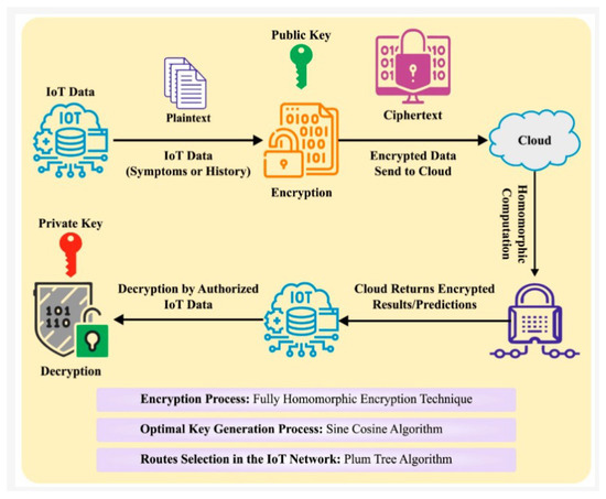 - Albakri, A.; Alshahrani, R.; Alharbi, F.; Ahamed, S.B. Fully homomorphic encryption with optimal key generation secure group communication in Internet of Things environment. Appl. Sci. 2023, 13, 6055. [Google Scholar] [CrossRef]