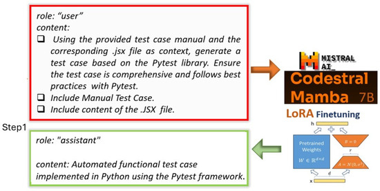 For the proprietary TestCase2Code dataset, each prompt combined a manual test case description with its associated .jsx source file to guide the generation of automated test scripts in Pytest. The instructional component provided by the user remained constant across all samples and was defined as follows: