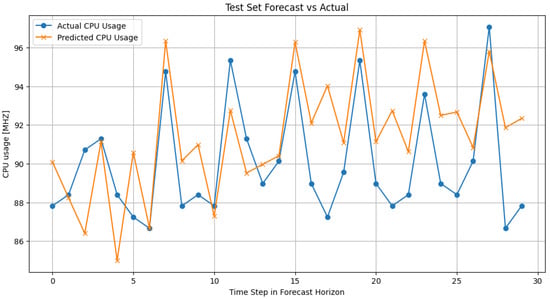 Comparison of predicted and observed CPU utilisation across the forecast horizon.