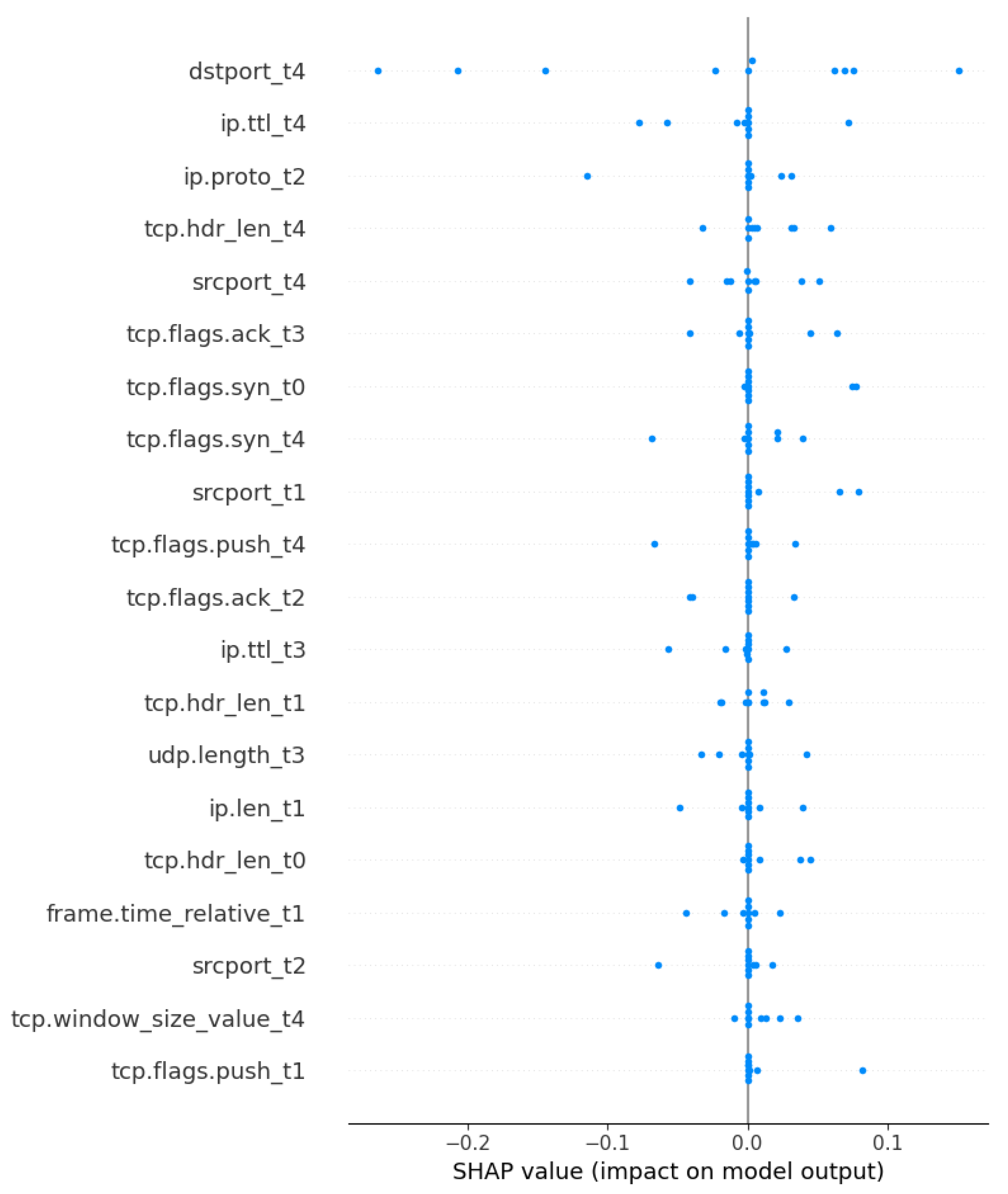 - Temporal pruning: From the previous analysis, TimeSHAP findings exhibit that the early time steps (i.e., t1-t3 possess higher predictive power. Thereby, the input sequence is reduced from 5 to 3-time steps (TimeSHAP-based).