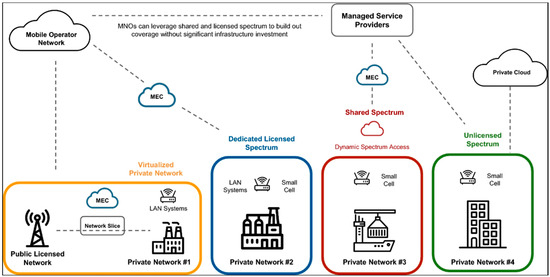 - Eswaran, S.; Honnavalli, P. Private 5G networks: A survey on enabling technologies, deployment models, use cases and research directions. Telecommun. Syst. 2023, 82, 3–26. [Google Scholar] [CrossRef]