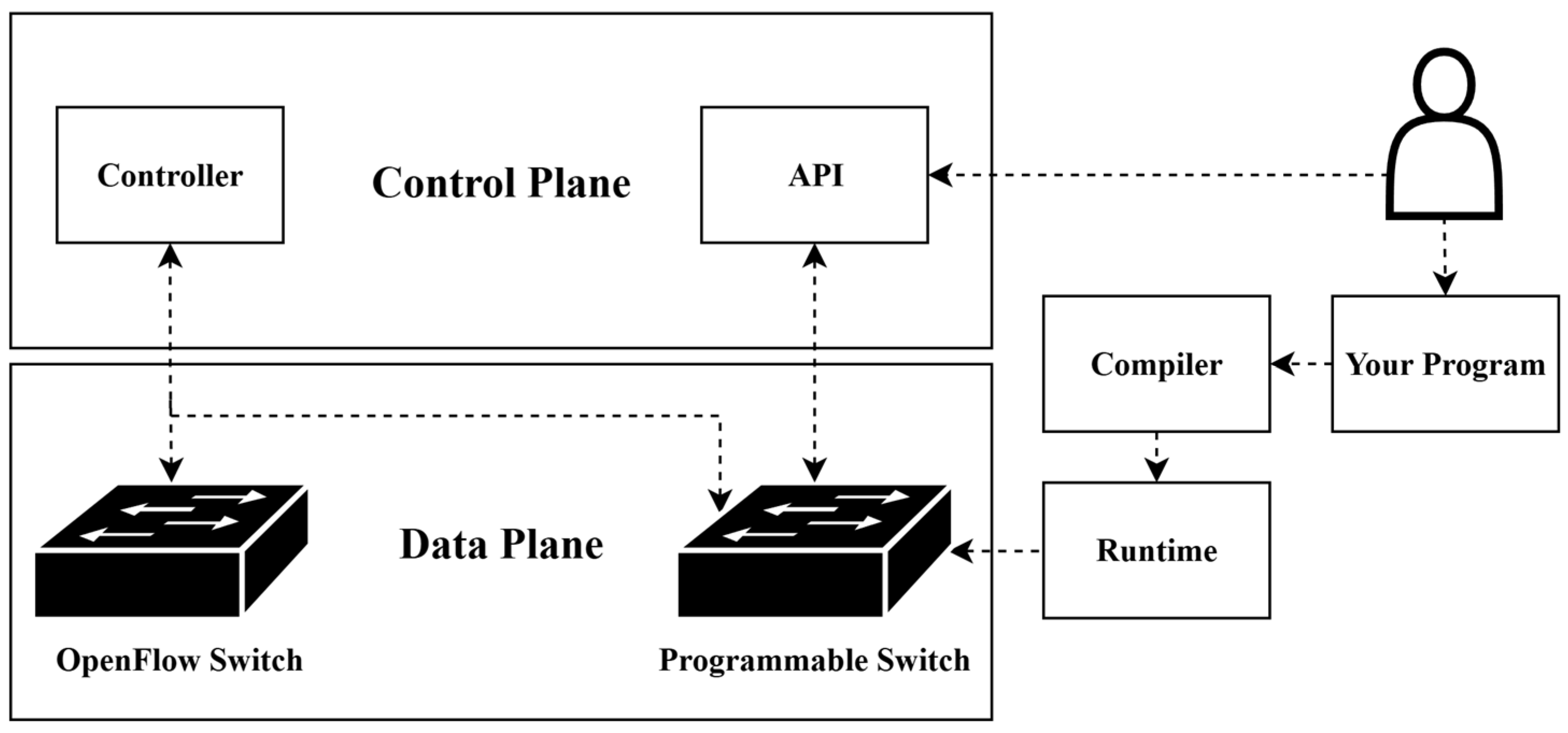 - Goswami, B.; Kulkarni, M.; Paulose, J. A survey on P4 challenges in software defined networks: P4 programming. IEEE Access 2023, 11, 54373–54387. [Google Scholar] [CrossRef]