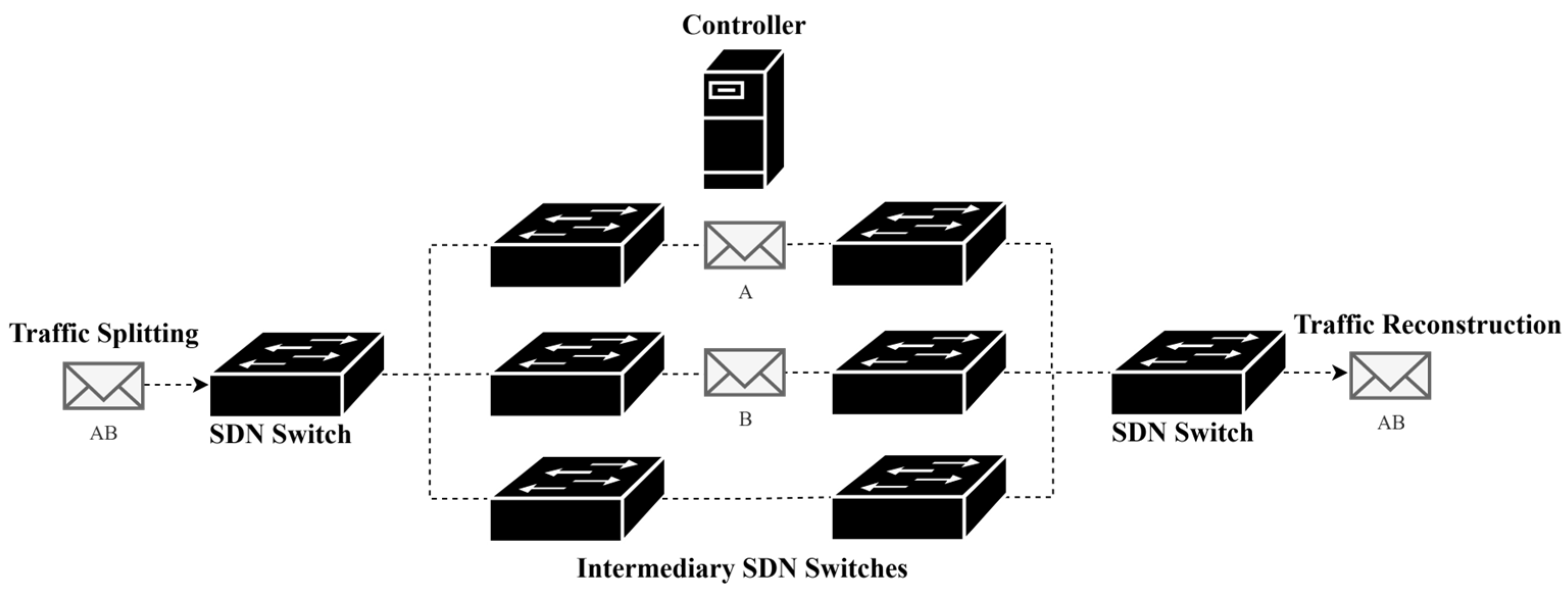 - Casado, M.; Freedman, M.J.; Pettit, J.; Luo, J.; McKeown, N.; Shenker, S. Ethane: Taking control of the enterprise. In Proceedings of the SIGCOMM ’07: Proceedings of the 2007 Conference on Applications, Technologies, Architectures, and Protocols for Computer Communications, Kyoto, Japan, 27–31 August 2007. [Google Scholar]