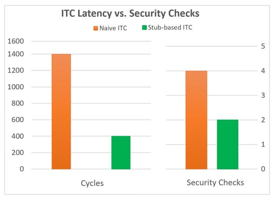 Evaluation of the stub-based cross-compartment communication model showed notable performance gains. It significantly reduces latency for small messages (e.g., 64 bytes), as shown in Table 6, while also decreasing the number of required security checks (Figure 5). From a security standpoint, compartment-specific sealing in the stub-based model not only prevents unauthorized access but also minimizes capability leakage. The reduced trusted computing base (TCB) and small stub footprint (200 bytes) make the approach more maintainable and amenable to formal verification compared to auditing entire compartments.