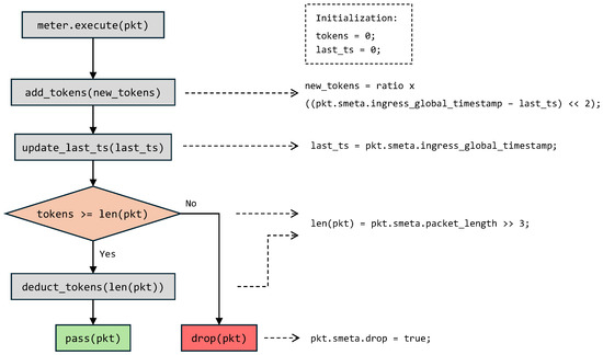- Wang, S.Y.; Hu, H.W.; Lin, Y.B. Design and Implementation of TCP-Friendly Meters in P4 Switches. IEEE/ACM Trans. Netw. 2020, 28, 1885–1898. [Google Scholar] [CrossRef]