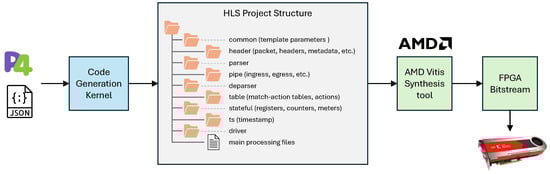 - Abbasmollaei, M.; Ould-Bachir, T.; Savaria, Y. P4THLS: A Templated HLS Framework to Automate Efficient Mapping of P4 Data-Plane Applications to FPGAs. IEEE Access 2025, 13, 164829–164845. [Google Scholar] [CrossRef]