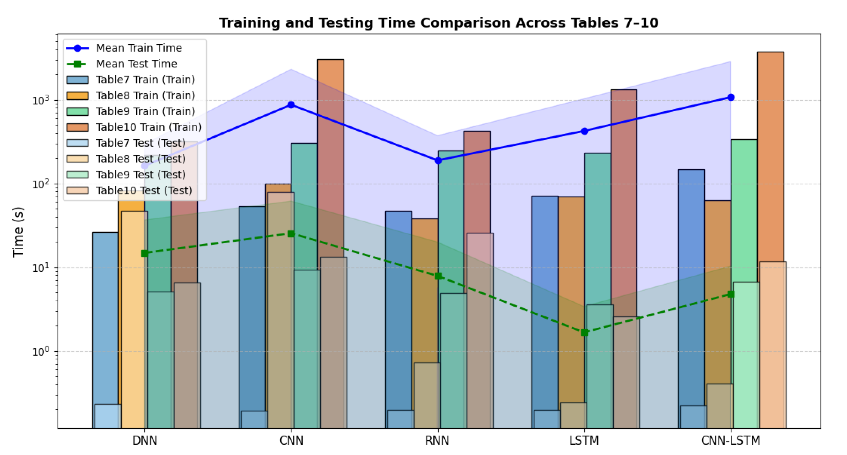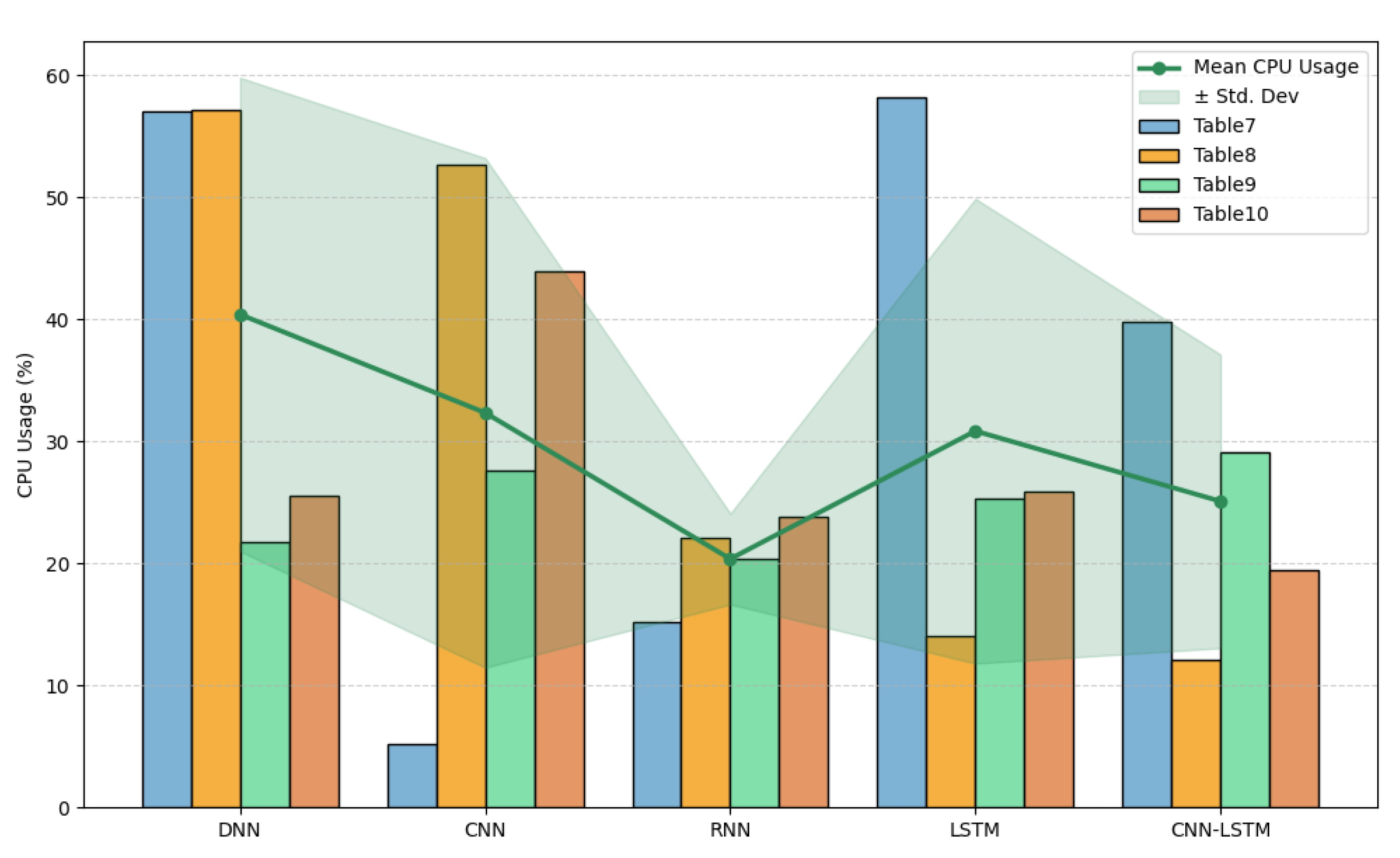 - It conducts a structured evaluation of five deep learning architectures (DNN, CNN, RNN, LSTM, CNN-LSTM) across two preprocessing settings to explore the balance between dimensionality reduction and performance.