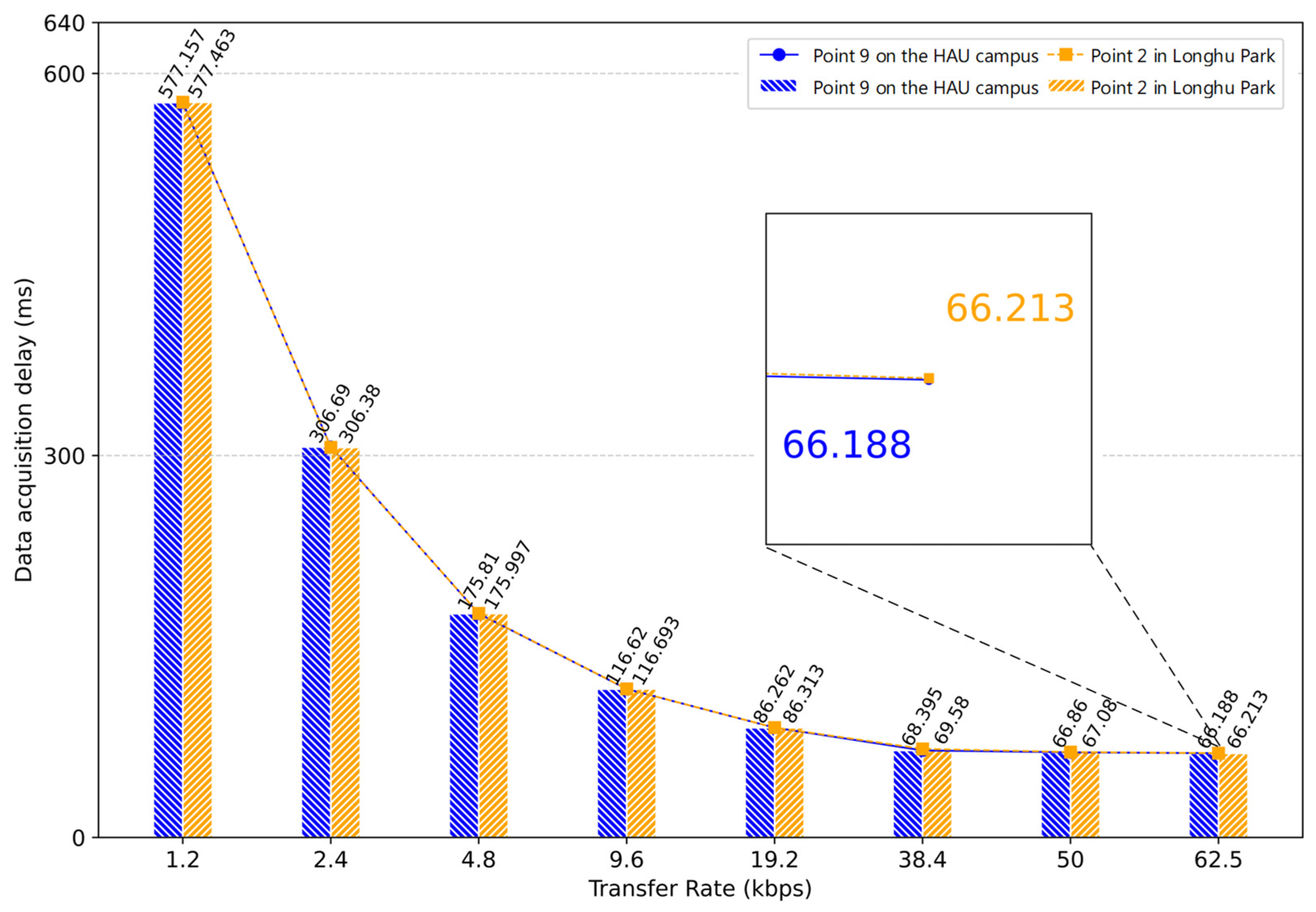 | Sensor Location | Distance from Point A | Data Acquisition Failure Rate Under the Traditional Method | Data Acquisition Failure Rate Under the Proposed QADA Method |