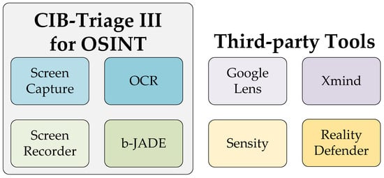 Analytical tools assist this process: Google Lens can detect duplicate images across platforms, while deep-fake-detection tools such as Sensity [] and Reality Defender [] verify content authenticity. Captured images are processed with OCR software to facilitate textual indexing, and visualization applications such as Xmind [] help investigators map and understand complex relationships within the collected intelligence.