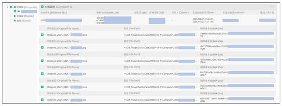 To realize this framework in practice, a digital-evidence collection system named CIB-Triage III (Figure 2) was developed. The system operates the framework by supporting modular acquisition, metadata extraction, hashing, and verification within a unified workflow. It enables evidence collection from mobile devices, computers, and cloud platforms, and its automated processes minimize human intervention, thereby reducing the risk of contamination or tampering.