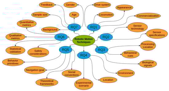 - How are behavioral cues processed to enable robot motion in socially aware navigation?: The processed behavioral cue is connected to the sensors used, but the focus is on the interpretation of the behavioral cue rather than the hardware. The processing or interpretation of these clues or signals has been included through research questions in previous reviews [,,].