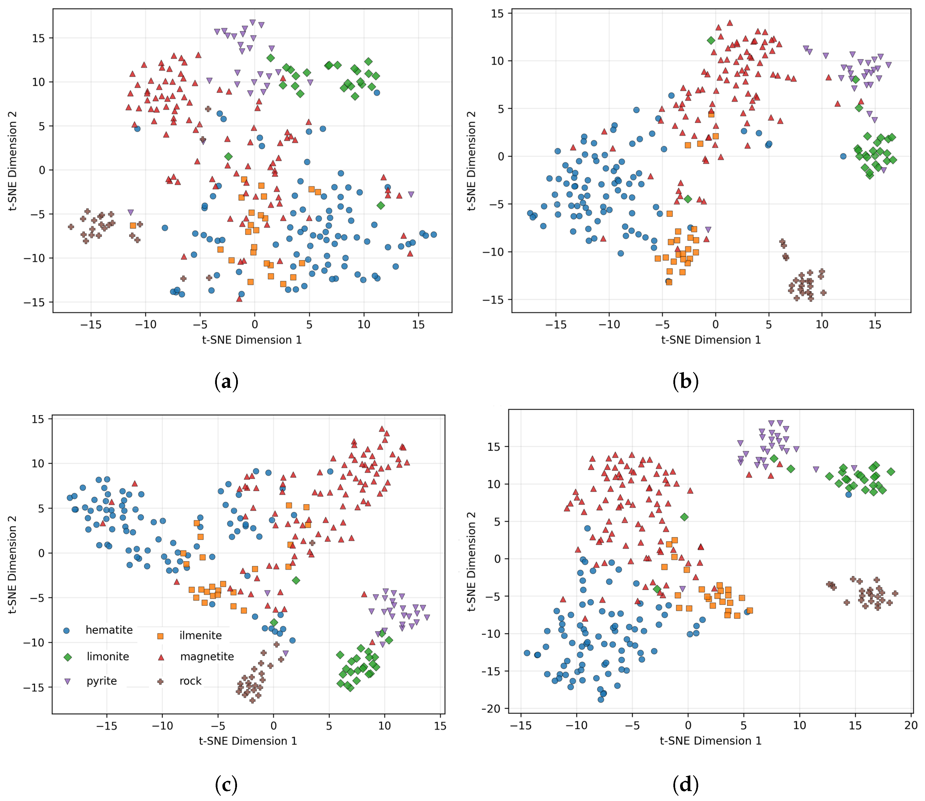 Ore classification represents a critical stage in mineral processing, directly influencing production efficiency, resource utilization, and processing costs [1,2,3]. Traditional manual, experience-driven sorting methods suffer from inherent limitations, including low efficiency, high costs, and strong subjectivity, rendering them inadequate for modern industrial scenarios [4]. Accurate and reliable classification serves not only as the foundation for ore quality monitoring and grade assessment but also as a prerequisite for flowsheet optimization and efficient resource utilization. With the advent of intelligent manufacturing, modern mineral processing imposes increasingly stringent technical requirements on classification models, particularly emphasizing strong adaptability under small sample conditions, an essential capability to address the challenges of complex sample distributions and limited data availability in practical industrial settings [5,6].