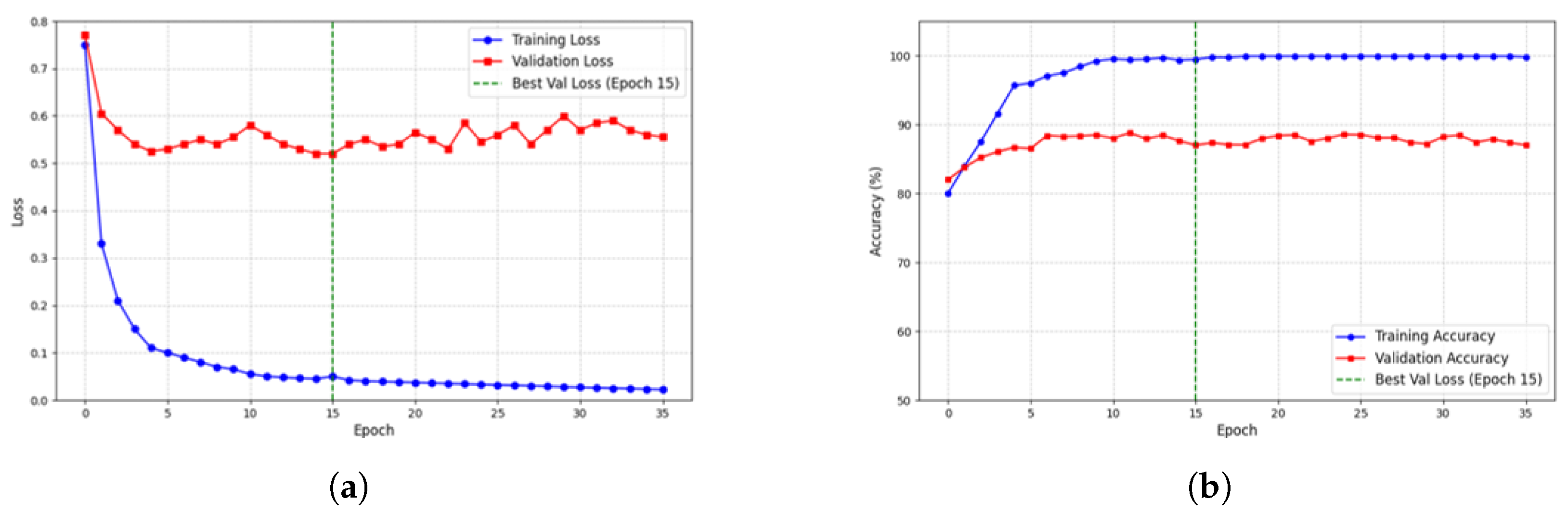 Figure 8. (a) Loss analysis for EDF-NSDE. (b) Accuracy analysis for EDF-NSDE.