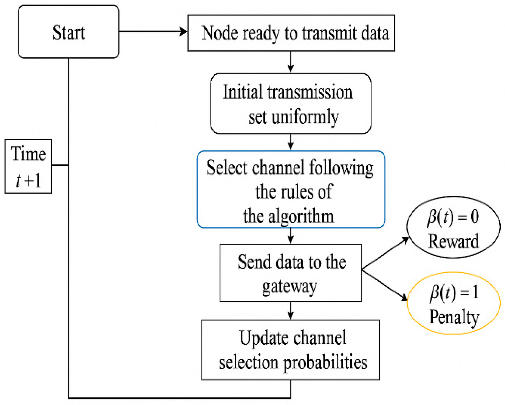 | Reward | Binary value: 0 for successful transmission (ACK), 1 otherwise | |