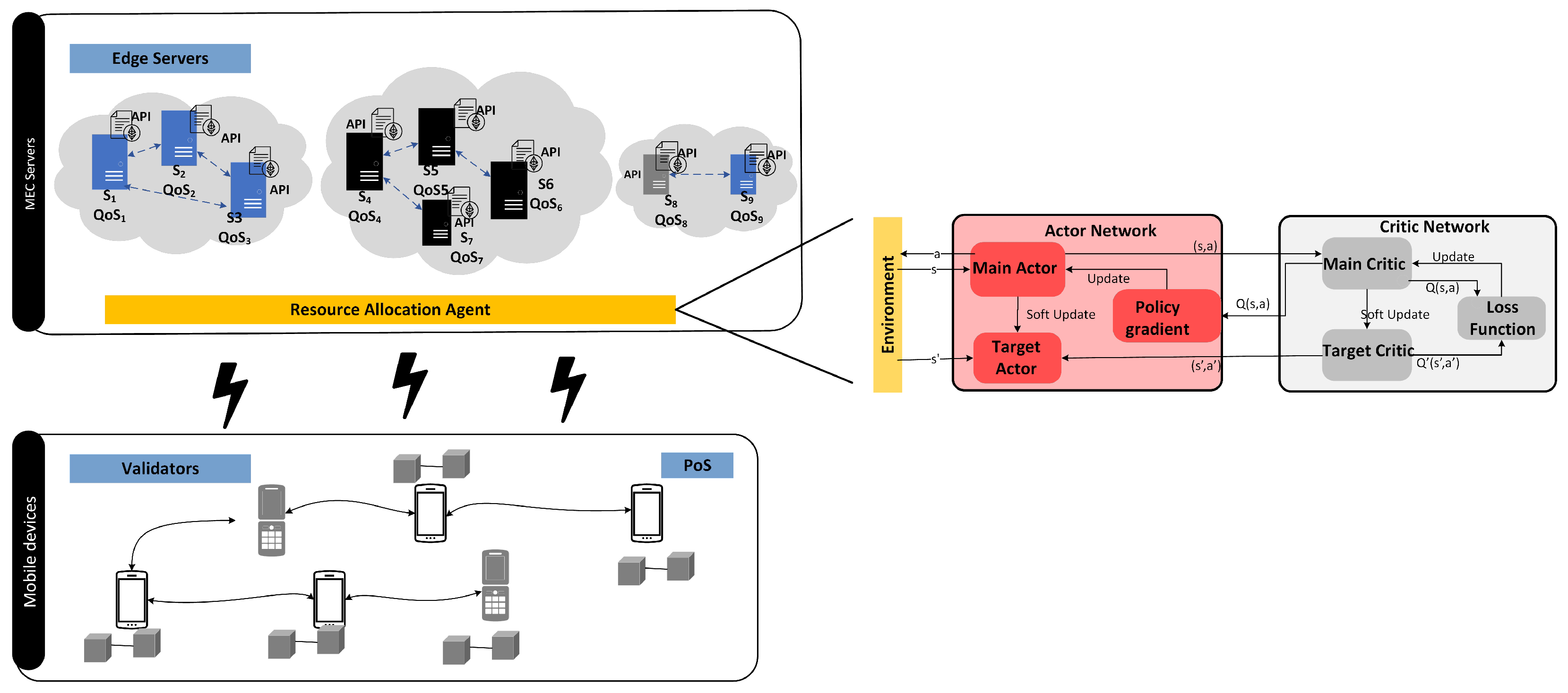 Figure 1. In this framework, we make certain assumptions to streamline the deployment and functionality of edge nodes. Firstly, we assume that the edge node, while not pervasive, maintains a satisfactory level of stability. Furthermore, it is configured to operate as a node within the Proof-of-Stake (PoS) consensus mechanism. This presupposes a reliable and stable environment for the edge node’s consistent performance. Our assumptions include deploying edge servers equipped with Docker images that encompass all the required software components to function as an Ethereum node. The Docker image is designed to generate a container, facilitating the efficient configuration of Ethereum nodes on edge servers. These assumptions collectively contribute to the foundation of our approach to mobile edge computing and resource allocation.