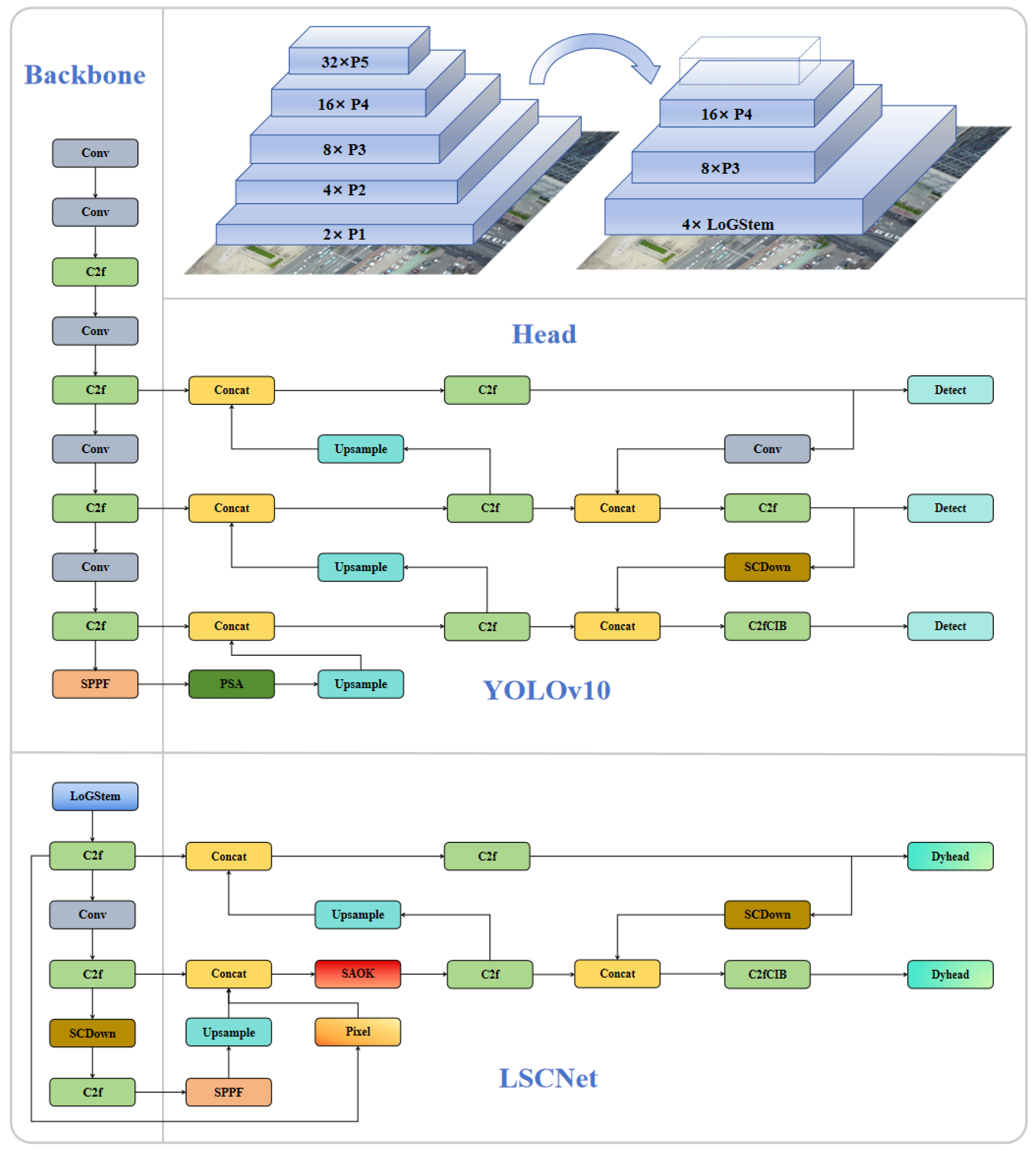 Motivated by this discovery, we suggest the LSCNet architecture, which focuses computational resources on the fusion and augmentation of shallow features rather than the three detection heads of the conventional YOLO structure. In particular, LSCNet only keeps two detection layers. More crucially, this architecture allows us to use more potent initial backbone networks while also drastically reducing the network’s computational complexity and parameter count.