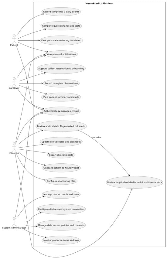 The modular design allows efficient integration with various medical devices and sensors, and so the NeuroPredict platform can evolve and scale with the changing clinical needs. Moreover, the platform can synchronously handle both continuous and episodic health data. This makes it particularly suitable for monitoring the subtle motor, vital, and cognitive changes occurring on different timescales in AD, PD, and MS.