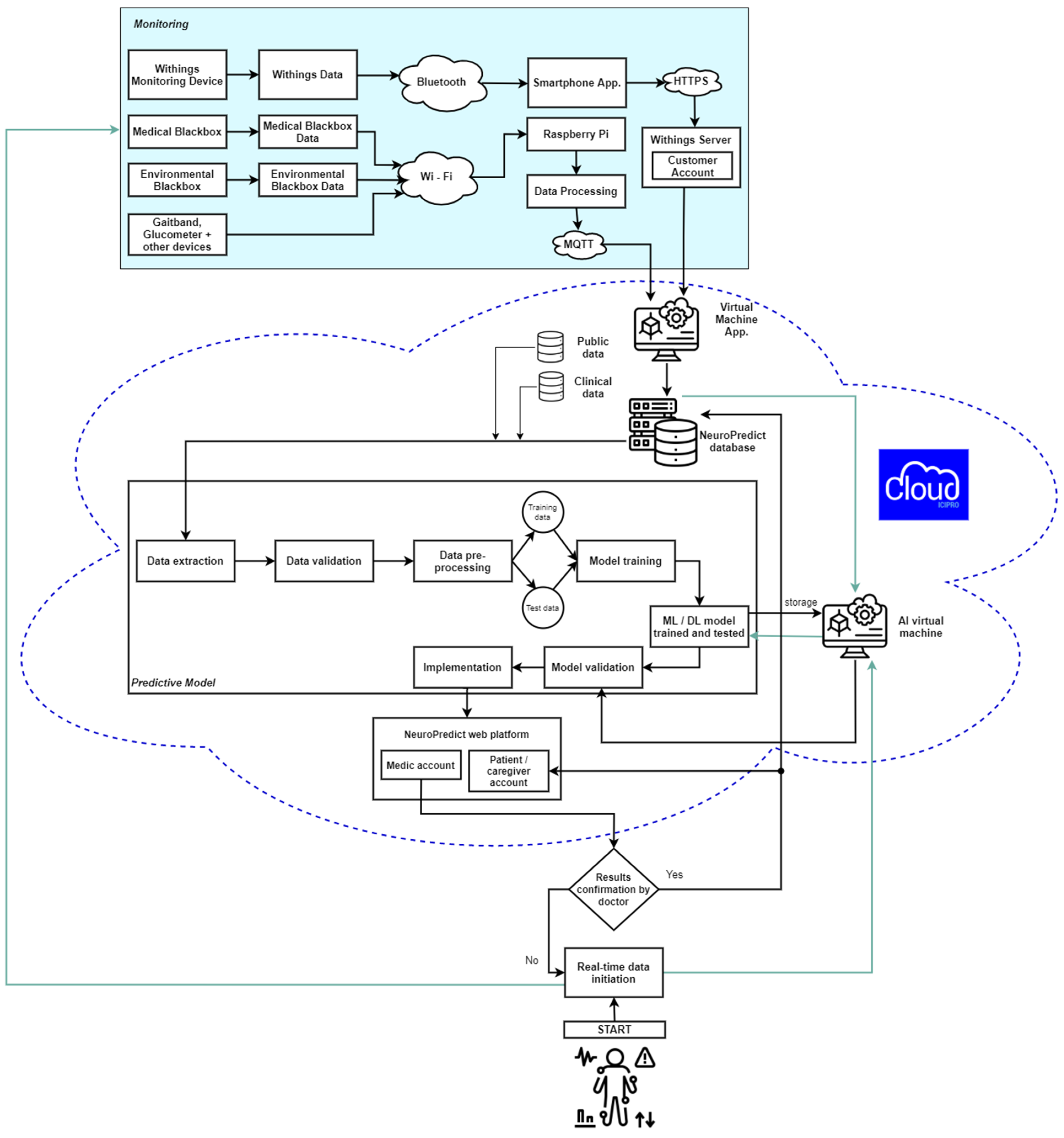 - EMR interoperability: The NeuroPredict platform will adopt healthcare data standards such as HL7 and FHIR, which will support its interoperability with EMR systems. This will enable its monitoring insights to be transmitted to the EMR, thus increasing its utility in clinical settings.