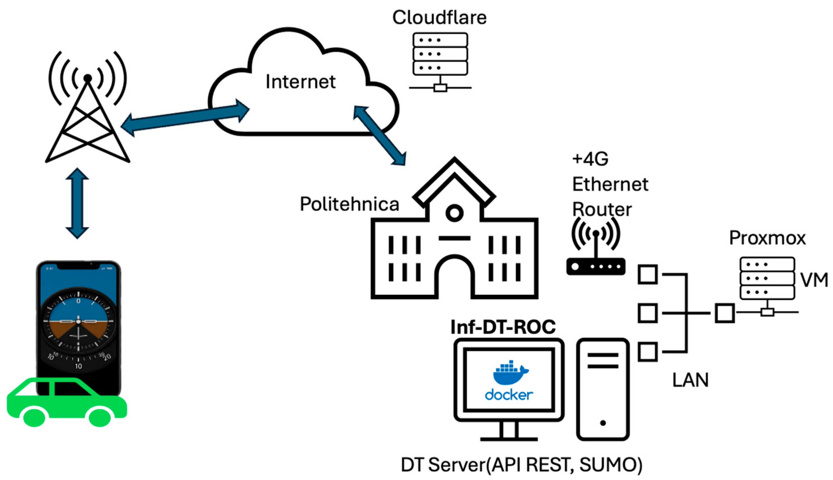15]. These contributions confirm that DTs and V2X technologies are increasingly viewed as foundational enablers of adaptive, connected mobility. However, existing literature rarely addresses driver-oriented Co-Pilot systems that operate on today’s widespread 4G networks while remaining compatible with emerging 5G/6G infrastructures. The mentioned references were selected to cover both foundational DT and ITS literature as well as recent advances in predictive simulation and cooperative mobility.