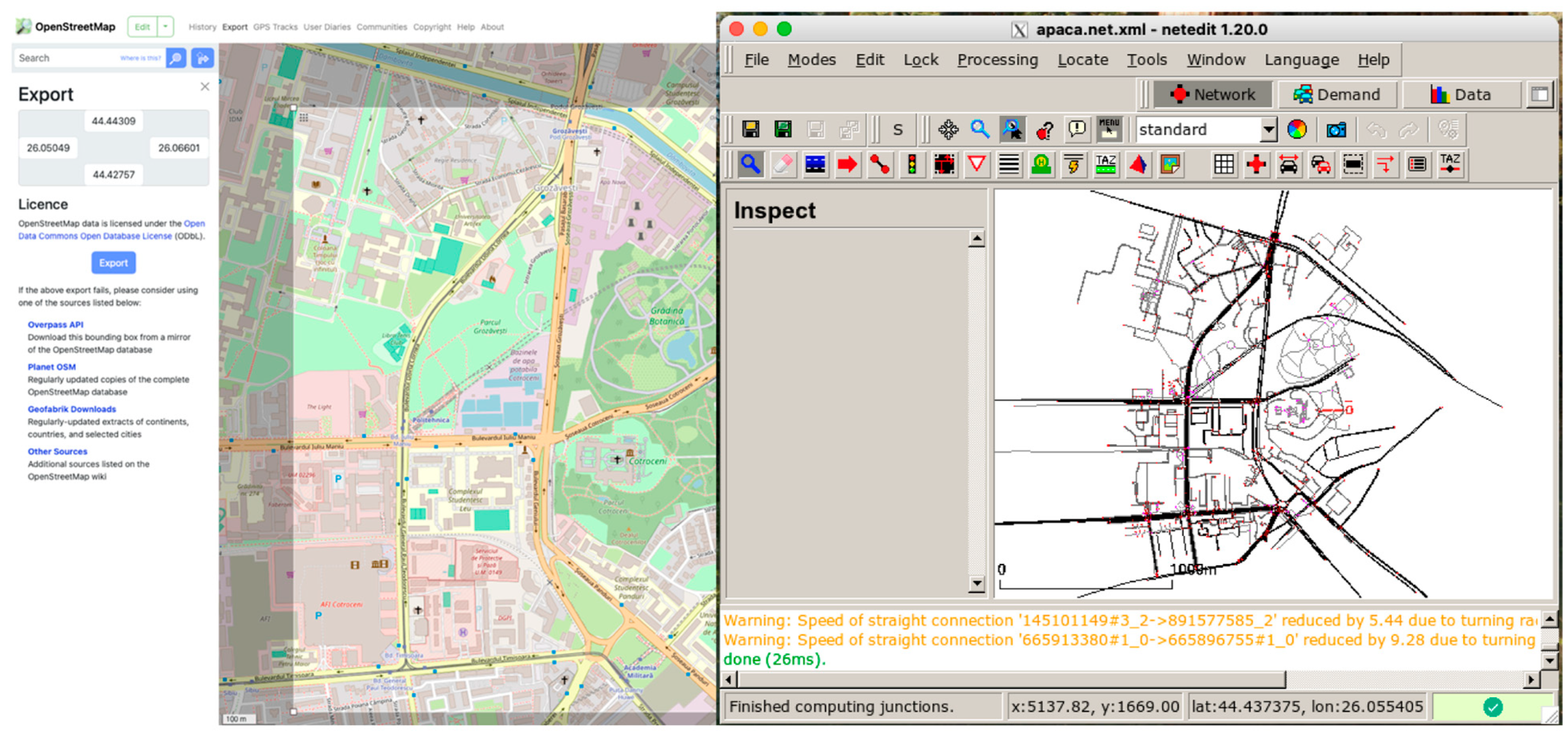 This snapshot provides the initial condition from which the DT-ROC evaluates multiple speed hypotheses. For each hypothesis, the system prepares a SUMO configuration that differs only in the imposed target speed for vehicles entering the ROC, while preserving the network geometry, demand pattern, and driver behavior parameters (IDM). SUMO (Simulation of Urban MObility) is an open-source microscopic traffic simulator widely used in ITS research for modeling vehicular interactions, queue formation, and road-network dynamics.