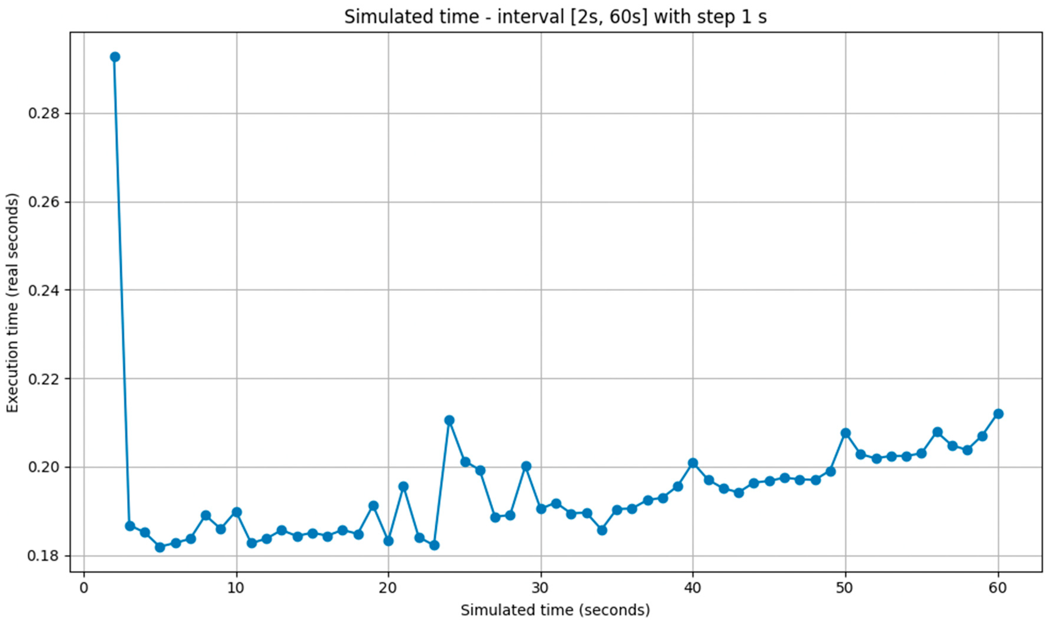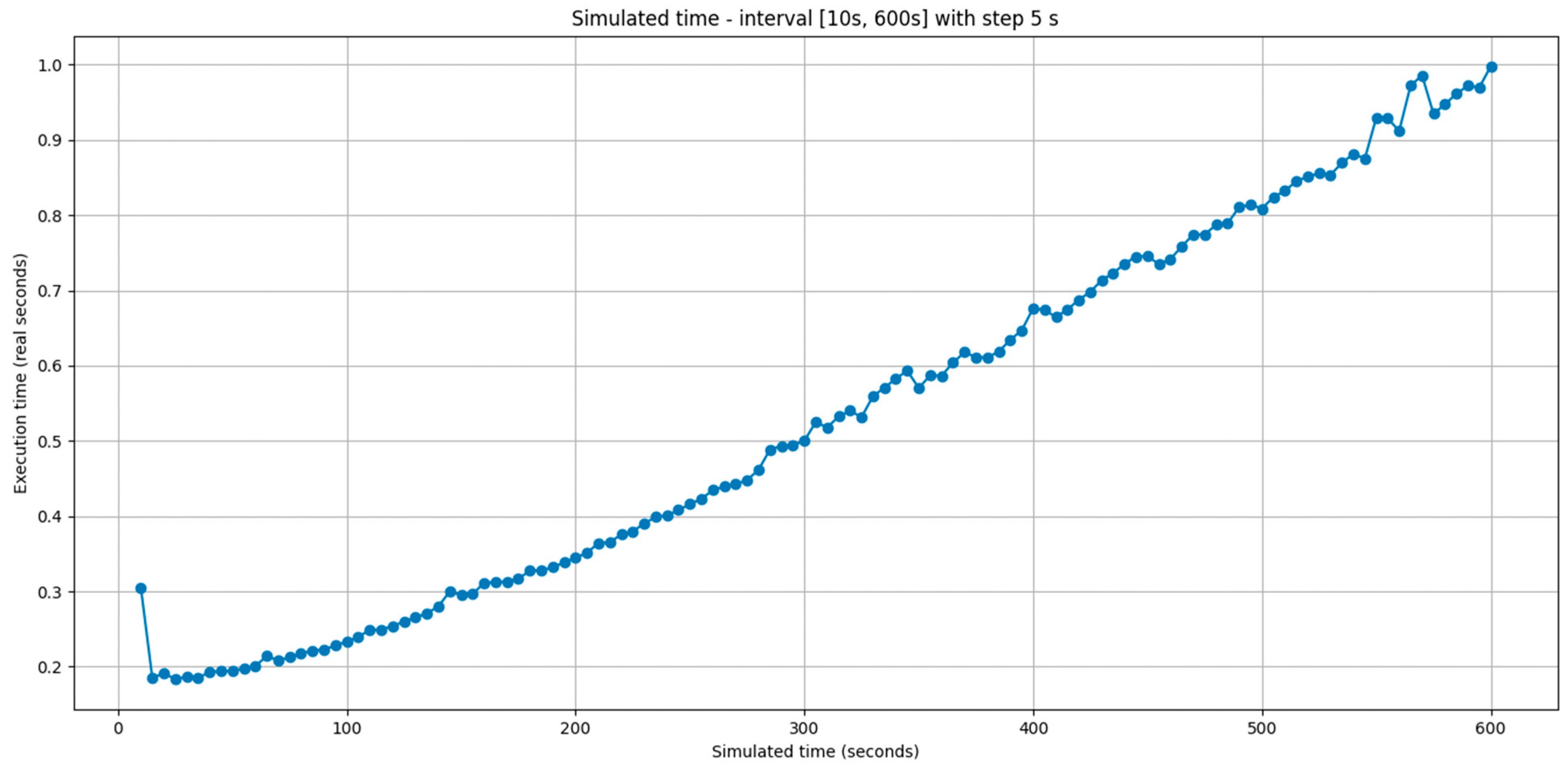 Because each simulation horizon is short (typically 30–60 s) and the SUMO engine executes these scenarios significantly faster than the corresponding physical time (as demonstrated in