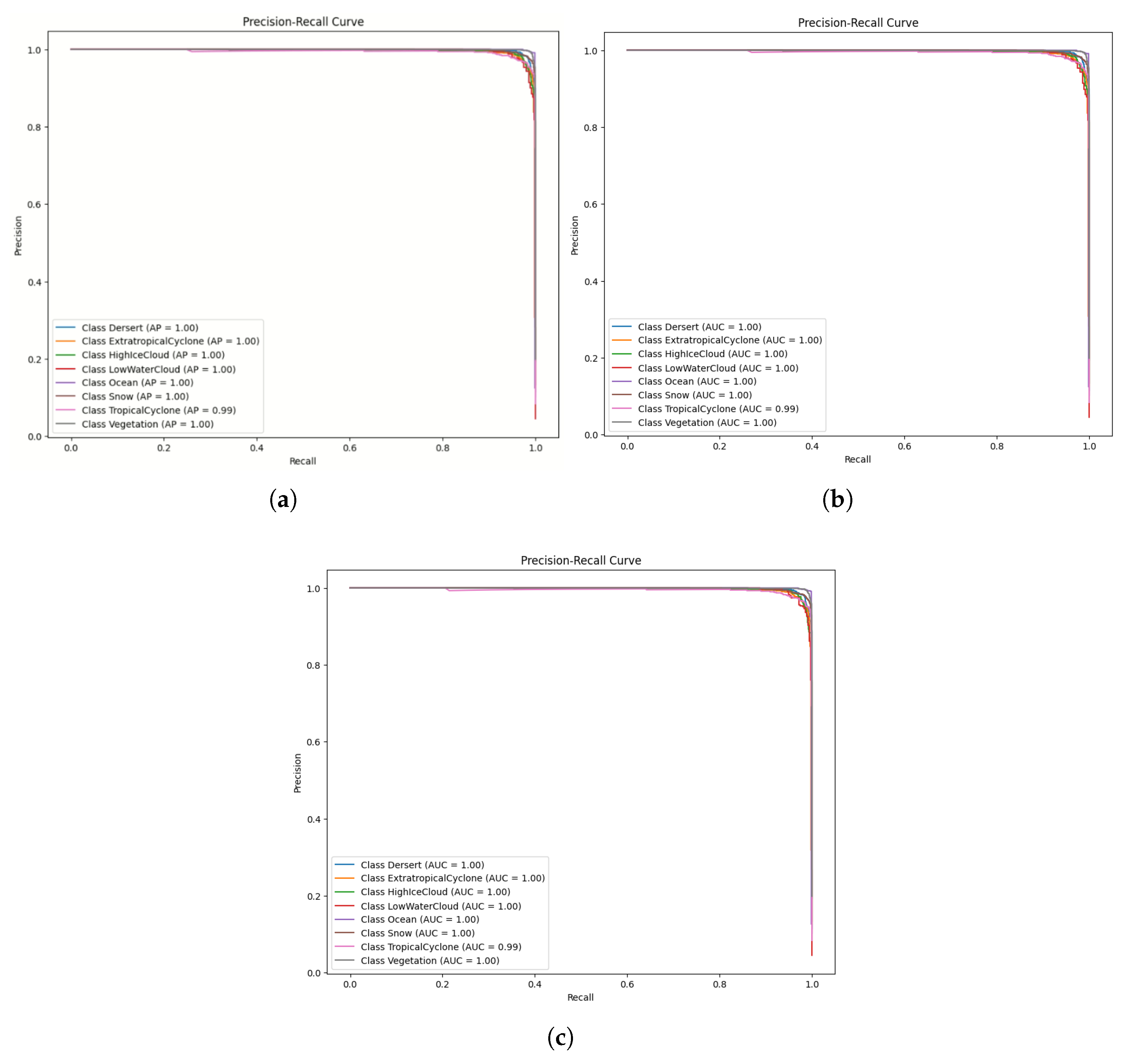 Figure 12 presents the trade-off between precision and recall with an AUC greater than 0.99 among all classes.