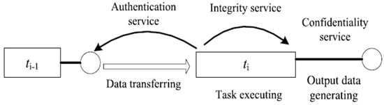 A secure workflow system necessitates the consideration of many security services for modeling security-sensitive applications, including authentication, integrity, and secrecy, as elaborated below [,,] and illustrated in Figure 6.