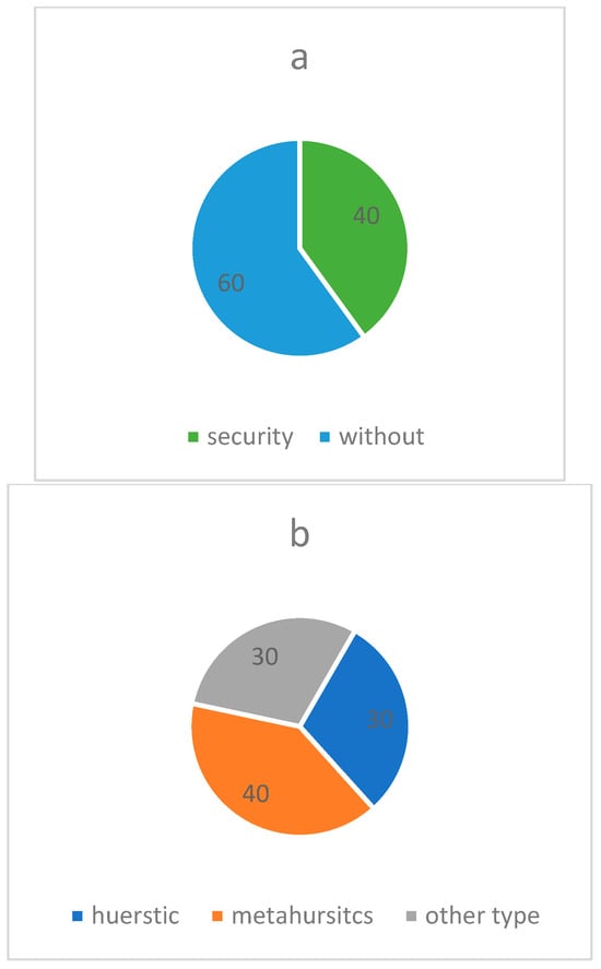 (a). Percentage of security and without security. (b) Percentage of methods used.