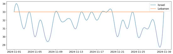 In order to illustrate and validate the presented methodological approach, this study conducts an analysis of data from Google News. Google News is a news aggregation platform that dynamically and continuously compiles headlines from various information sources, organizing them and serving as an amplifier of content from recognized and accredited media outlets []. To achieve this, a comparative analysis is performed on the news aggregated by the main pages of Google News Israel (in Hebrew) and Google News Lebanon (in Arabic). The period considered spans thirty days, covering the entire month of November 2024, a timeframe marked by escalating tensions between Israel and Hezbollah, alongside Lebanon’s involvement in the broader context of conflicts in the Middle East. The relevance of this study lies in its examination of how a digital news aggregation platform reflects journalistic coverage of topics related to both countries, taking into account linguistic and editorial particularities. This case study aims to provide a descriptive perspective that aids in understanding the reported events, shedding light on the dynamics of narrative construction and its impact on information consumption in crisis scenarios.