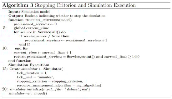 The algorithm in Figure 6 defines the simulation’s stopping criteria. More details can be seen in the experimental evaluation section below.