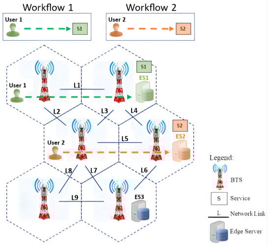 Edge computing takes advantage of distributed computing resources across the entire continuum of available network elements (edge nodes), from data production devices to the cloud. Edge computing also offers a promising concept for transferring a significant part of the cloud service to the network edge [5]. Thus, edge computing is becoming a key technology for addressing increasing latency and bandwidth challenges in modern networks, particularly MEC (multi-access edge computing) in the context of IoT applications [6]. The significance of MEC lies in its ability to bring data processing and storage closer to end mobile devices, effectively shifting a substantial portion of cloud services to the network’s edge. This approach significantly reduces latency and improves network efficiency [7]. MEC optimizes resource usage and supports time-sensitive applications such as online gaming, augmented reality, and high-definition video streaming [8].