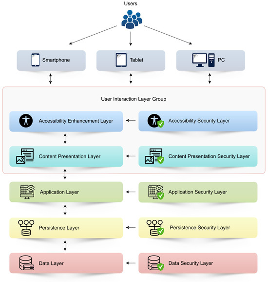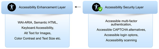 The lack of integration between accessibility and cybersecurity in existing models highlights the need for a holistic architectural approach. Fanea-Ivanovici and Pană [26] emphasized the importance of comprehensive strategies in digital transformation initiatives. By embedding accessibility and security considerations into each layer of the architecture, developers can create applications that are both inclusive and secure.