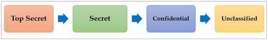 Multilevel security employs a strategy that classifies data and users using a combination of hierarchical security levels and non-hierarchical security categories []. According to [], a multilevel security policy has two main objectives. The controls must first prevent unauthorized users from accessing data classified above their acceptable level. Secondly, they must restrict entities from declassifying data.