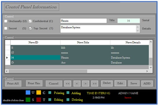 In a multilevel secure system, when a subject attempts to access an object, the system must decide whether to grant access. For example, Budati et al. proposed a multilevel privacy protection approach to mitigate data compromise attacks on private cloud systems []. Additionally, other studies have focused on developing and deploying a functional prototype of a multilevel secure database system []. Lin focused on designing a multilevel blockchain architecture to uniformly distribute operations []. Jiang et al. also proposed an algorithm for image encryption using a multilevel permutation technique []. Some models are designed to integrate with distributed systems, providing a set of security patterns for large, complex systems []. The intelligent system’s multilevel security policy model has been examined as a guide for its main application, which is building dependable distributed systems []. In another study, the use of a tool designed for users improved the instructional efficacy of teachers in presenting material []. In publication [], the authors present a framework that addresses the security concerns of private cloud systems.