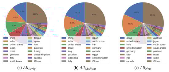 This analysis is conducted by extracting information related to the authors’ affiliations and associating each paper with the set of countries obtained as the union of all author’s current affiliations. Examining the use of LLMs in different geographical contexts helps to understand how cultural, economic, and infrastructural factors influence adoption and application. Moreover, it can reveal differences in access and adoption of LLMs between high-income and low-income countries, highlighting possible technological or economic barriers. It also shows how regulations and healthcare policies vary globally, impacting the implementation of LLMs (e.g., differences between Europe and the USA). The analysis also explores how language barriers or cultural differences influence the effectiveness of LLMs (e.g., the adaptation of multilingual models in non-English-speaking contexts). The combination of both temporal and geographical analyses enables the discovery of geographical areas where LLMs have spread more rapidly in response to specific events.
