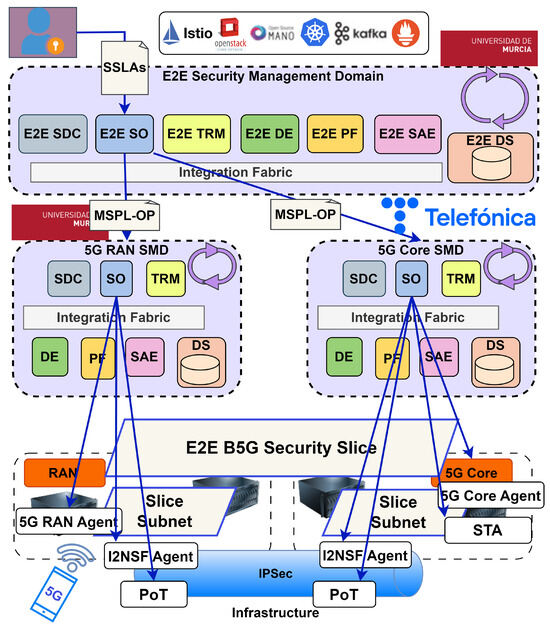 - Security is integrated as a native component in the process of creating and managing E2E slices.