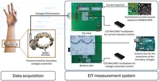 - Liebing, T.; Kähler, D.; Kern, T.A. Design of a miniaturized wearable eit system for imaging and hand gesture recognition. Curr. Dir. Biomed. Eng. 2023, 9, 443–446. [Google Scholar] [CrossRef]