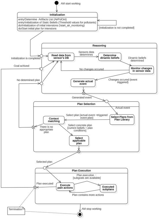 AM’s reasoning cycle is based on the concept of practical reasoning by rational agents [31] and includes the following steps (Figure 11):