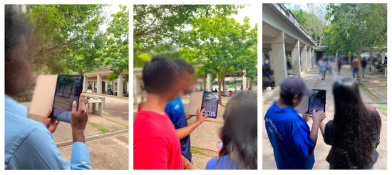 - Pombo, L.; Marques, M.M. Marker-Based Augmented Reality Application for Mobile Learning in an Urban Park: Steps to Make It Real under the EduPARK Project. In Proceedings of the 12th International Conference on Computer Supported Education (CSEDU 2020), Prague, Czech Republic, 2–4 May 2020; Volume 2, pp. 16–25. Available online: https://ieeexplore.ieee.org/document/8259669 (accessed on 29 December 2023).