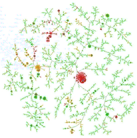 - Probst, D.; Reymond, J.L. Visualization of very large high-dimensional datasets as minimum spanning trees. J. Cheminformat. 2020, 12, 12. [Google Scholar] [CrossRef] [PubMed]