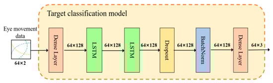 Figure 3 illustrates the specific structure of the target classification model. The model contains two LSTM modules and dense layers. The input is the eye-tracking data. Since there are three classes of radar targets, the model outputs a 3-classification result.